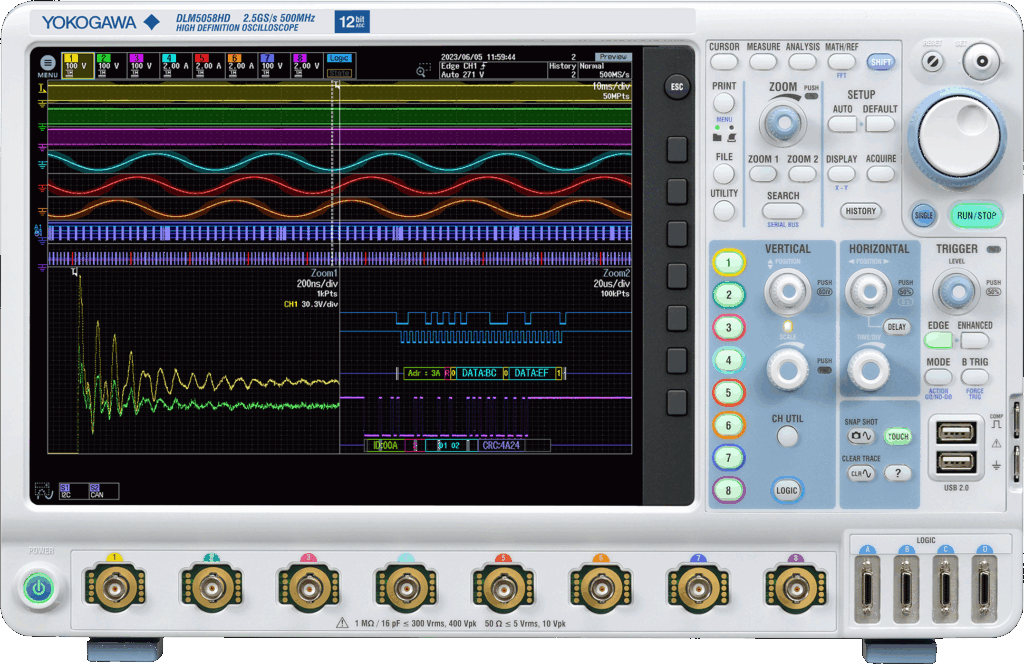 The DLM5000HD Series High-Definition Oscilloscope is the latest addition to the Yokogawa Test&Measurement oscilloscope line-up that takes you beyond eight channels.